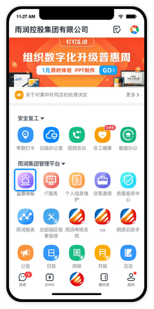 打開釘釘APP,點擊底部工作臺,選擇監察舉報小程序